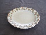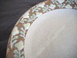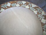 鉄分を含んだ茶色い土を、電動ロクロで成形し、縁は小さく波うたせています。