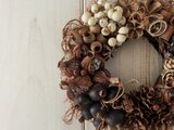 様々なドライフラワーの木の実でアレンジしたミニリース。