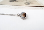 樹木のように見えるのが特徴の「デンドリティッククォーツ」を、「身に着ける植物標本」のイメージでネックレスにしました。