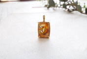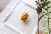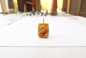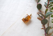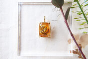鮮やかでジューシーなオレンジ色のクォーツの中に浮かぶ草花のシルエット。
