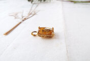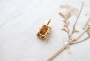 クッションのようにふっくらと磨かれたクォーツを四隅の爪でしっかりと留めています。