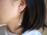 爽やかさを演出する2色の天然ガラスを、繊細なカレンシルバー・ビーズで繋ぎ合わせ、涼しげな印象のピアスに仕立てました。