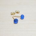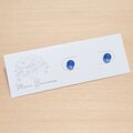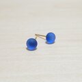 透明なロイヤルブルーの板ガラスを電気炉で小さな半球状の粒ガラスに溶かしフロスト加工(艶消し)した一粒ガラスのピアス/イヤリングです。