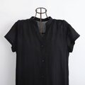 【着丈調整可能】ストンとしたIラインシルエット コットン 前開き 裾ティアードワンピース ブラック 0561BK