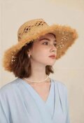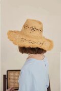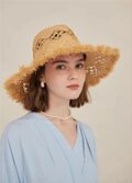 LifeXtyleへようこそ。 マダガスカル産の本物のラフィアから作られたこの100%手作りのつばの広いサマーハットをご紹介できることを誇りに思います。 帽子のつばは手織りのタッセルで、散らばったタッセルは地面に咲く雑草のようで、生命力に満ちています。 帽子の上側は窓の形に織り込まれており、通気性を高め、帽子全体のデザインに驚きを与えます。 世界中の多くの有名人やファッションインフルエンサーの夏の定番であるラフィアは、ミニマリストデザインのエレガンス、UV保護とシェーディングの実用的な機能、手工芸品の美学、そして豊かなアフリカの歴史を備えた、世界で最高のサマーハット植物素材の1つであり、ユニークな夏からわずか一歩です。 その品質とデザインは、わずかな価格で、主要な国際的な高級ブランドと同等です。 顔から太陽をほぼ完全に覆い隠すつばの広い帽子で、太陽や紫外線から守りながら神秘的な印象を与えます。 小顔効果も期待できます。 また、ドレス、無骨なファッション、浴衣など、あらゆるスタイルの服装と簡単に組み合わせることができます。