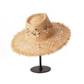 ラフィアハット、ツバ広麦わら帽子 夏用 切り抜き織り ストローハット、飾り ミディアムブリム 日よけ・UV対策