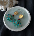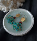 少し歪な楕円形が素敵とても美しいガーネットとターコイズをふんだんに使用したエスニックなピアス。