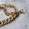 程よく艶のあるゴールドトーンと太めのチェーン使いで、チャンキーでレトロな存在感が魅力的です。