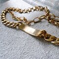 B130-ヴィンテージブレスレット U.S.A. 1980s Triple Chain Rectangular Plate