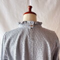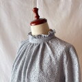 襟も袖もかっちりした作りなのに、肩と背中のギャザーと、緩やかなAラインで、