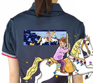 ポロシャツ 回転木馬と街の灯 イラスト 馬 horse 木馬 カルーセル メリーゴーランド ネイビー