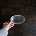 楕円で可愛い◆プレスガラス変形皿 クリア 曇りガラス 古民家 古道具 器 昭和後期