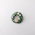 クリスマスリースに留まった文鳥さん。螺鈿のリース飾りが華やかです♪
