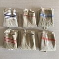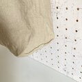 購入時にクリーニング済みのものでさらに製作後に洗っておりますが、アンティークの生地には独特の匂いがあります。また、落ちないしみ、汚れなどがある場合がございます。アンティークのナンバーテープはデッドストックの物ですが、こちらも経年劣化でしみがある場合がございます。ご了承ください。