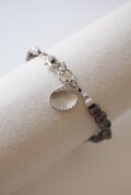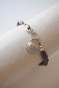 メタリックに輝く美しいブラックバロックパールをドイツ製絹糸で丁寧に仕上げております。ブラックパールは母貝に大切に守まれ育てられた存在です。パールに母貝のシェルチャームがそっと寄り添う可愛らしいブレスレットです。