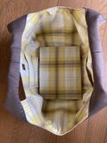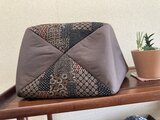 無地と柄の組み合わせの4枚はぎのバッグです。