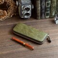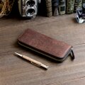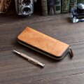 イタリアバダラッシ・カルロ社の革「プエブロ」を使い全て手縫いで丁寧に仕立てるラウンドファスナー型のペンケース。