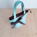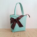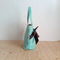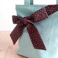 安心のファスナー付き リボン付きトートバッグ 肩掛け 母の日 ミントグリーン帆布×ブラウン水玉/ドット 912