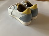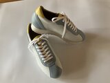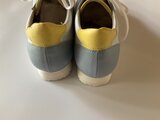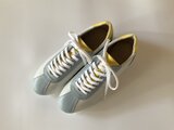 柔らかなパステルブルーとレモンイエローの組み合わせが目を惹く、レトロな雰囲気のスニーカーです。