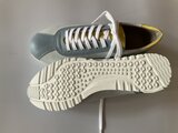 パステルブルー×レモンイエローのレトロスニーカー|レザー×春色素材
