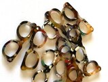 マーブルの模様(白 ベージュ ライドブラウン系 マーブル模様とその色は個々異なりますのでご了承くださいませ)の入った可愛い 茶系の眼鏡モチーフ(約3cm、色目の出方は一つ一つ異なります)と 軽い 透明感のあるライトブルー色のプラスティックチェーンで お洒落なグラスコードを作りました。