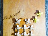 素材はブナ材他、大きさは38×21×4cmです。オイル塗布。アクリル絵具使用。
