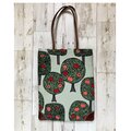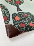 薄いグリーン地にさまざまな形のりんごの木が並んだ可愛い柄です。