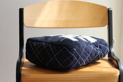 刺し子は、デザイン性はもちろんふっくら感を出すためにキルト芯を付ける前と付けた後2回に分けて刺しました。