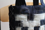 こちらの作品は、トートバッグにもショルダーバッグにもなる2wayタイプの絣のバッグです。