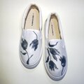 遊びごころのある靴が欲しくて購入させていただきました。バツ印が軽快でかわいいです。私は左右で足幅が若干違います。こちらの靴はニット素材なので足幅に合わせて伸びてくれます。お取引もスムーズでした。