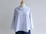 ゆったりシルエットのセーラーカラーTブラウス(国産オックス生地・チェック柄)受注製作
