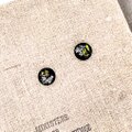 黒漆の空に光る星とイエロー螺鈿の星々のラウンドピアスイヤリング【2167】蓄光 ノンホールのコピー