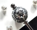 かんざし モノトーンのダマスク柄パールビーズ 白黒 シルバー 洋風 一本挿し 一本簪 和モダン 軽い ブラック