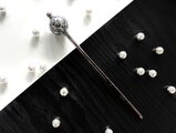 モノトーンのダマスク柄パールビーズでかんざしを作りました。