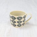 マット釉のやわらかな質感と、ぽこぽこと浮かび上がる立体的な花模様が魅力のフラワーマグ。