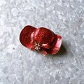 ゴールドトーンに赤いエナメルペイントされたHATモチーフブローチ。
