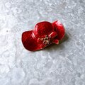 パープルのラインストーンでフラワーを摸したアクセントが華やかに添えられ、艶やかな表面の赤いHATが、現代のファッションとの融合でレトロな個性を放ちます。