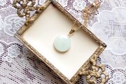 三種類の淡い淡いグリーンのマーブル模様が、まるでなめらかな陶器を思わせるペンダント。