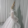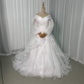 ウェディングドレス 取り外しオフショルダー シースルー袖 ラッフルフリル 編み上げ フリルドレス 前撮り 韓国風ドレス