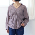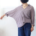 新色★クリンクルコットンドルマンスリーブブラウス【ラベンダーグレー】