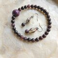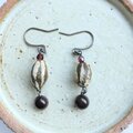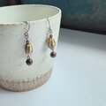 陶土オリジナルビーズと【ヌーマイトインガーネット】のピアス(イヤリング)です。