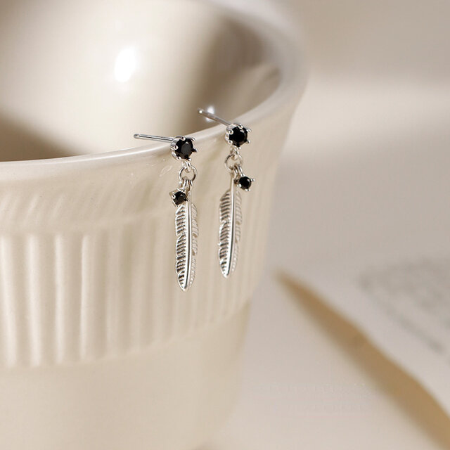 ピアス 揺れる 羽 羽根 ウィング フェザー ブラック