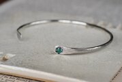 シルバーのバングルに一粒エメラルドを留めて制作を行いました