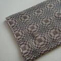 色味の違う紫3色ときなりを組み合わせて、円をモチーフにした幾何学模様に織りました。
