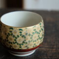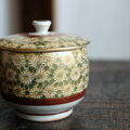 菊の花尽くし◆九谷焼 色絵金彩蓋付湯呑み 丁寧な暮らしに。昭和レトロ 高級 骨董好きにも。