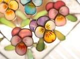 6輪のビオラを額装したステンドグラス作品です。(一点物です)