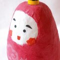 新聞と半紙を交互に15回重ねて乾かし、仕上げに丹後和紙を貼って「張り子だるま」の完成です。