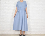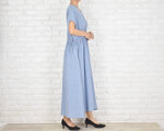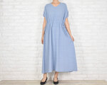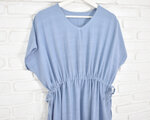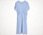 ふわりと心地よい、コットン素材のリラックスVネックワンピース ライトブルー
