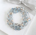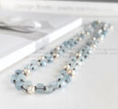 透明感のある石やミルキーなブルー、濃いめのブルーなどミックスしたロングネックレスです。