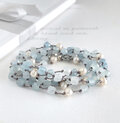 ブルーミックス キューブカットのアクアマリン コードロングネックレス(グラスコードに変更可)